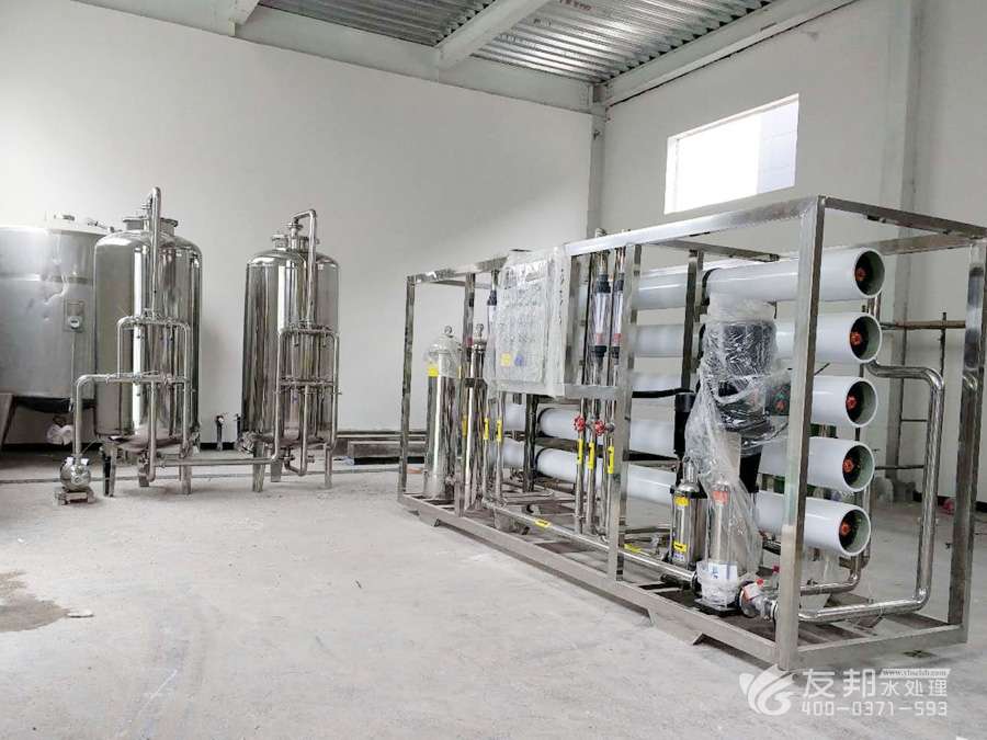4、原水→原水增壓泵→多介質過濾器→活性炭過濾器→軟水器→精密過濾器→第一級反滲透→紫外線殺菌器→純水箱→用水點(推薦工藝電導率≤10μS/CM)