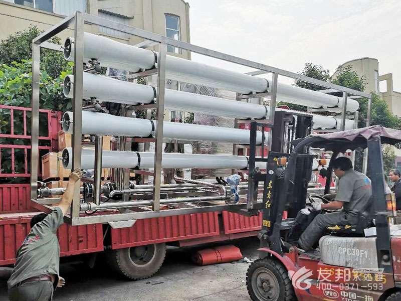 原水→增壓泵(一用一備)→砂過濾器→炭過濾器→硬化器(根據地區不合選用)→精密過濾器→兩頭水箱→RO前水泵→精密過濾器→RO高壓泵→RO反滲透零碎→RO水箱